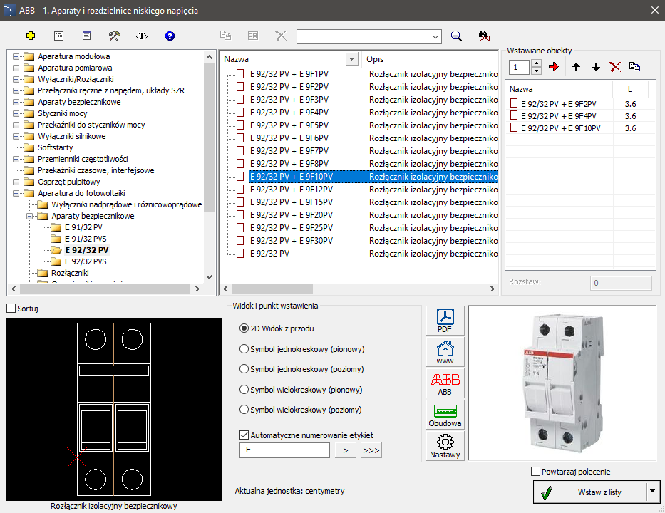 Okno dialogowe ABB – „Aparaty i rozdzielnice niskiego napięcia”