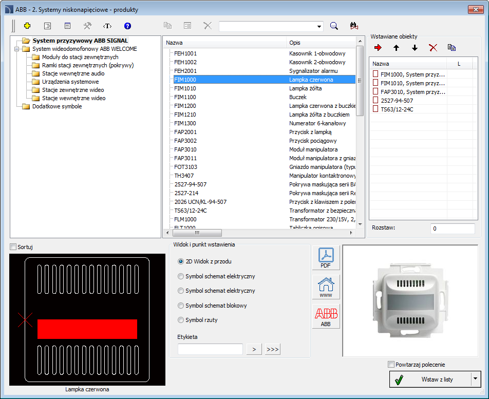 Okno dialogowe ABB – „Systemy niskonapięciowe - produkty”