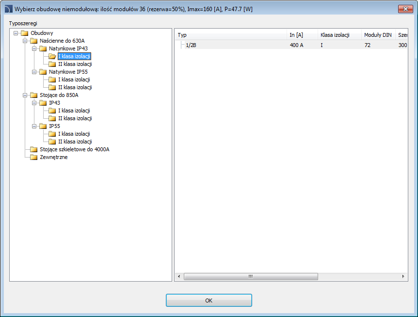 4. W wyświetlonym oknie dialogowym wybierz żądany typ obudowy.