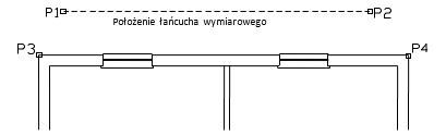 W drugim etapie należy określić kolejne mierzone punkty (P3, P4 itd.). W jednym łańcuchu można określić dowolną ilość wymiarów. Aby zakończyć wymiarowanie wciśnij klawisz Esc lub prawy przycisk myszki.