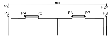 Po ponownym uruchomieniu polecenia można wstawić do rysunku kolejne wymiary. Przy określaniu położenia łańcucha wymiarowego można wskazać linie boczne (P1, P2) poprzedniego wymiarowania. W ten sposób można dołączać do siebie kolejne łańcuchy. Po wskazaniu położenia łańcucha należy wskazać kolejne mierzone punkty (P3–P8).
