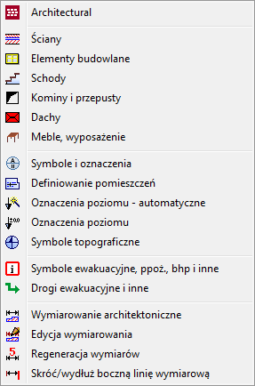 Menu modułu CADprofi – Architectural