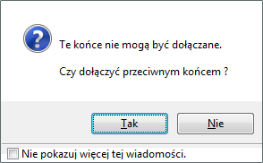 Przy wyborze obiektów należy zwracać uwagę na ustawienie Punktu wstawienia. Poprawny wybór punktu umożliwia automatyczne połączenie obiektów. W przypadku niepoprawnych połączeń wyświetlany jest komunikat o braku możliwości połączenia wybranych końców szynoprzewodów, dając możliwość obrócenia przyłączanego elementu.