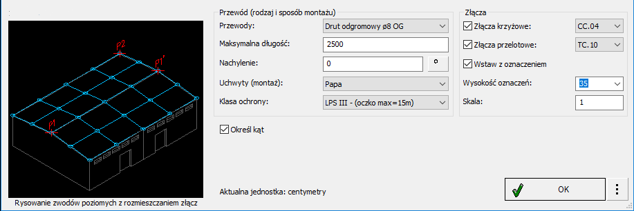 Okno dialogowe Systemy odgromowe