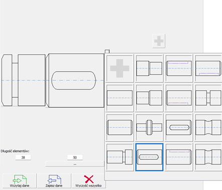 Długość elementów – pole do wprowadzenia długości poszczególnych stopni wału.